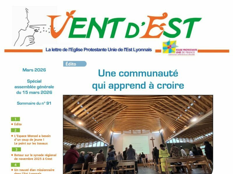 Découvrez, avec Vent d'Est, les dernières informations de l'église protestante unie de l'Est Lyonnais.